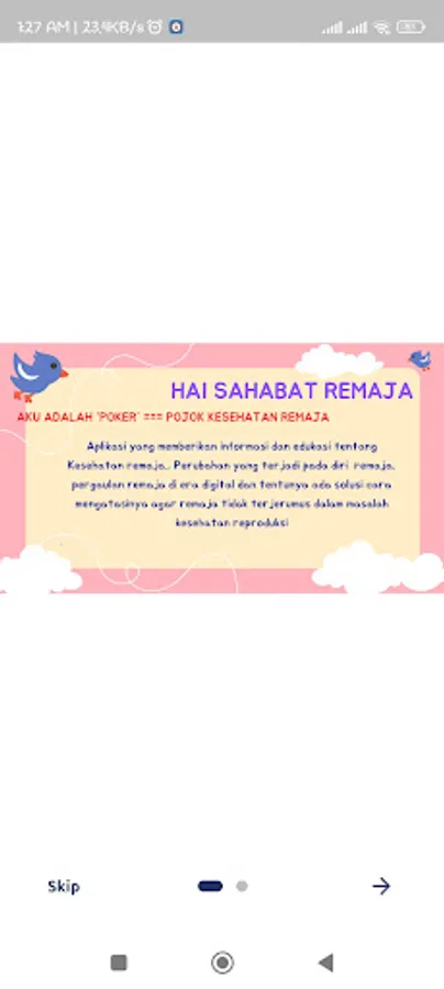 An application that provides information and education about adolescent health, changes that occur in adolescents, adolescent relationships in the digital era and of course there are solutions to overcome them so that adolescents do not fall into reproductive health problems.