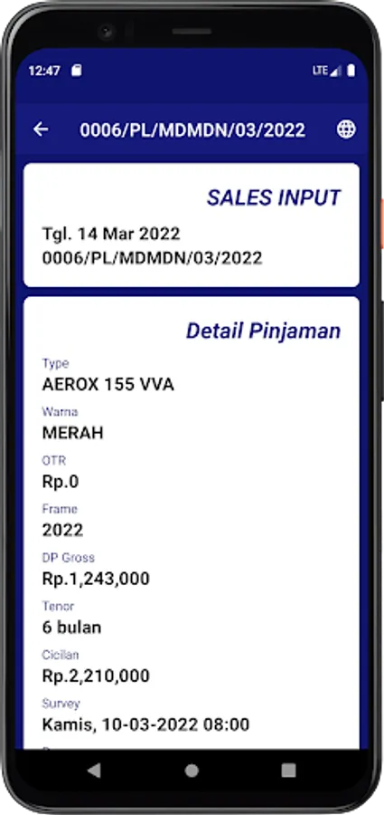 Aplikasi yang dipergunakan oleh staff sales unit dalam pengisian form pooling atau permohonan kredit ke leasing untuk pembelian sepeda motor Yamaha..