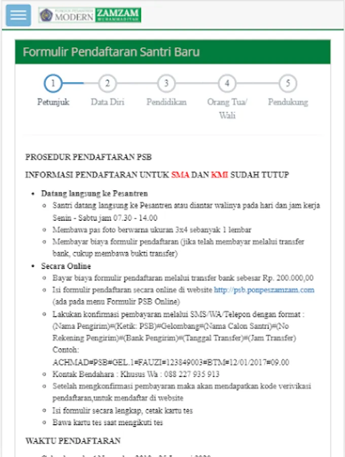 The Modern Zamzam Muhammadiyah Islamic Boarding School is a formal Islamic Education Institution that provides junior and senior high school education under the Muhammadiyah Association and is assigned to the Ministry of Education and Culture (Education Office) and Ministry of Religion (Depag). Located in Pernasidi Village, Cilongok District, Banyumas Regency, Central Java, Indonesia, with an educational orientation towards developing religious and general potential in students in forming a pious, accomplished, independent and noble generation.