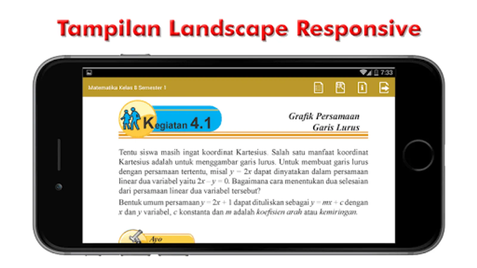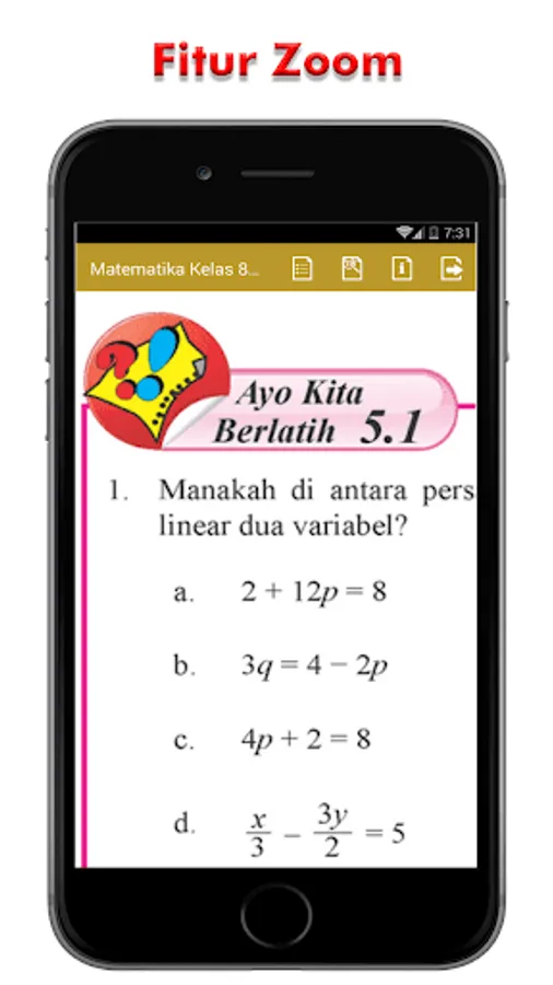 Hopefully this android application can facilitate school students studying Maths Class 8 Semester 1 anywhere and anytime.