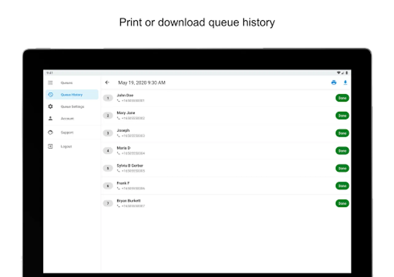- Queue history and report