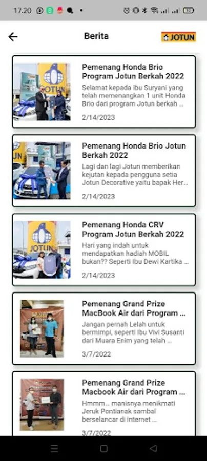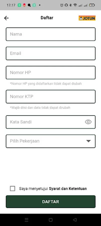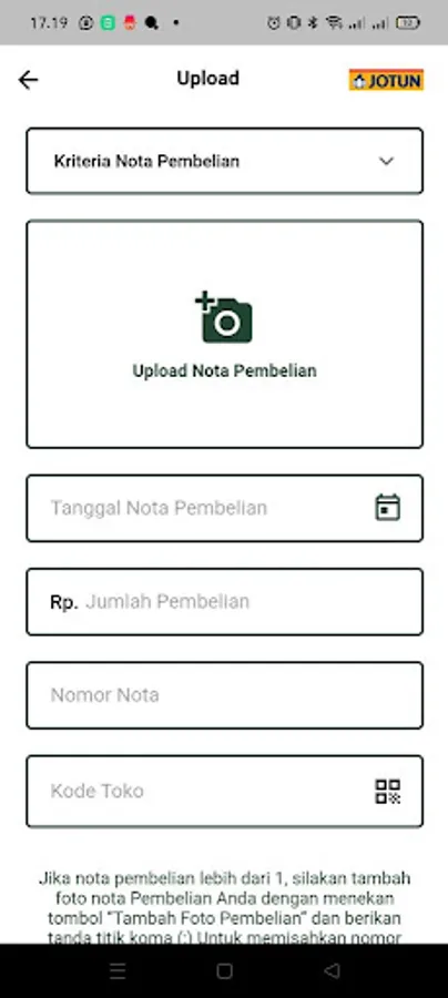 Jotun Promo Indonesia is an application developed by PT. Jotun Indonesia as a means to receive entries in the form of Purchase Notes from consumers who take part in the Promotion program under the name "Jotun Berkah Berlimpuh Rejeki Hari Raya" during the period March 1 2023 - May 31 2023.