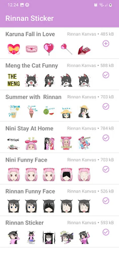 Sticker collection for WhatsApp from Rinnan Kanvas and Rinnan's Friends.