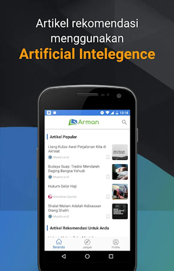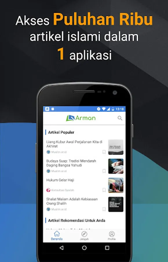 Arman is an application that contains a collection of useful Islamic articles. This application is very useful for anyone who wants to add to the treasury of Islamic knowledge. Curated articles tie various trusted sources so that it is very easy for users.