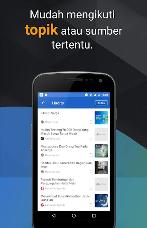 Arman collects articles from various trusted sources such as muslim.or.id, muslimah.or.id, almanhaj.or.id, storymuslim.or.id, muslimafiyah.com, rumaysho.com, Konsultasisyariah.com and many more.
