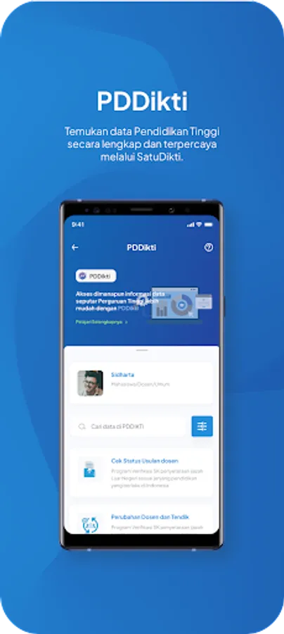 Satudikti is a mobile-based platform that is integrated with various excellent services from DITJEN DIKTIRISTEK (Directorate General of Research and Technology Higher Education). This application is equipped with the best features in search, announcements, news, and assistance to meet the needs of all Dikti personnel. SatuDikti carries a mission to provide excellent service in the scope of higher education.