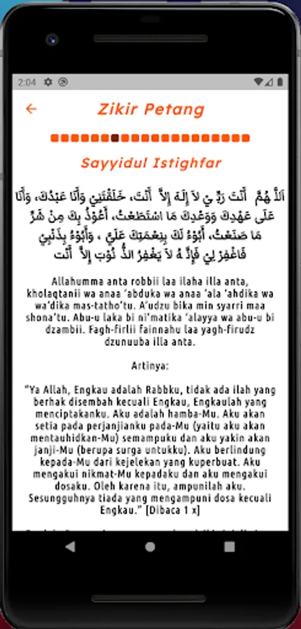 This application is a dhikr viewer application in the morning and evening. can see in sequence, accompanied by Arabic text and Indonesian translation