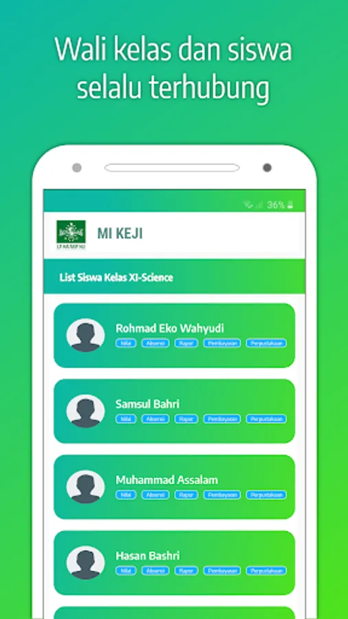 Students and parents can manage biodata, online classes, finance, library, and academic (absenteeism, grades and report cards). So you can find out the data every second through this application.
