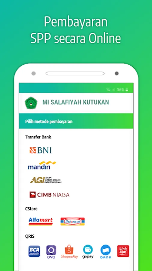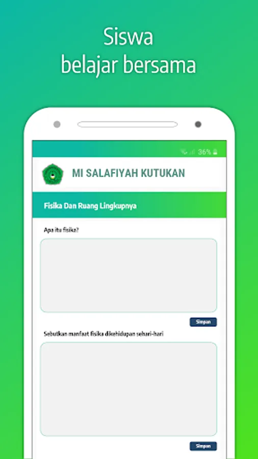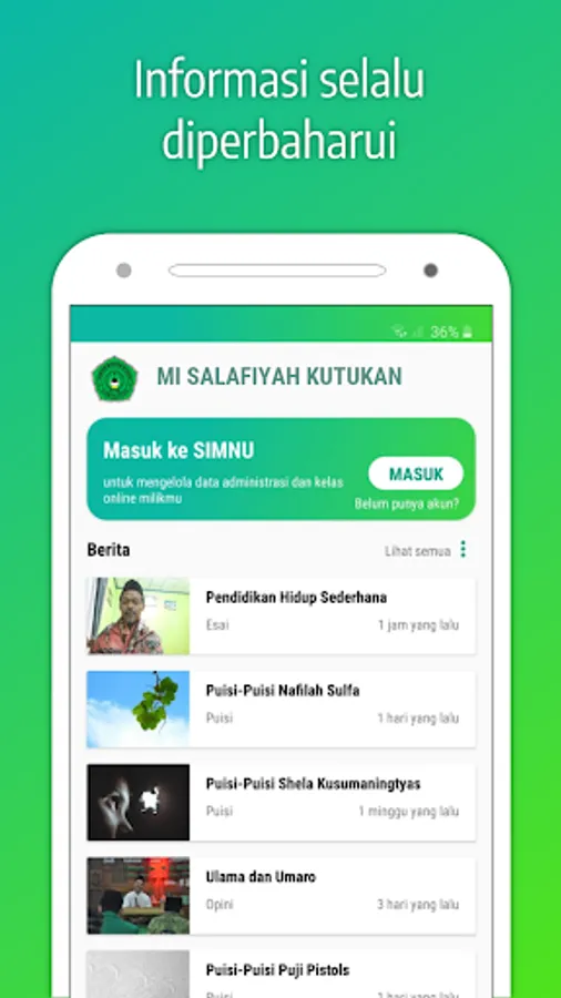 This application belongs to MI SALAFIYAH KUTUKAN which contains website information and management of school administration and online classes. The features of this application are: