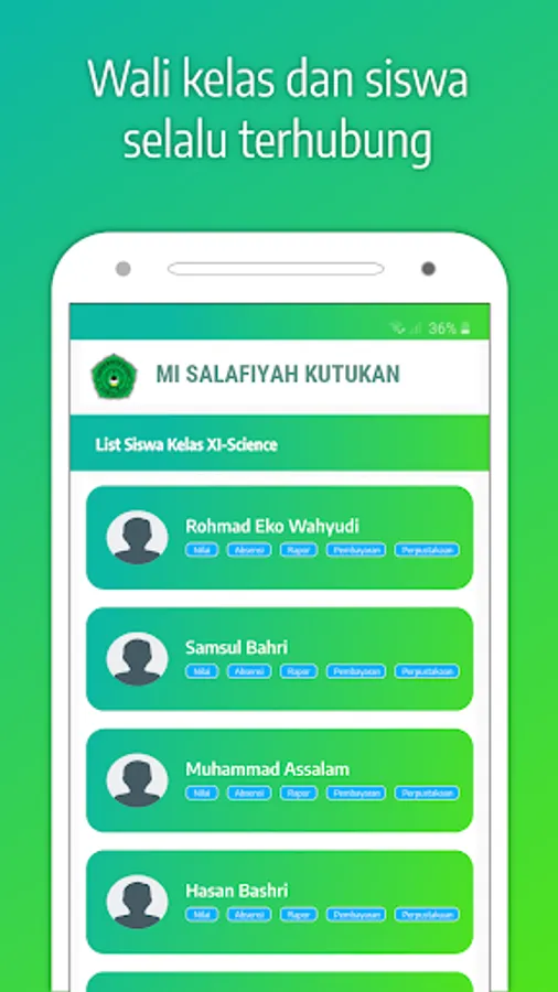 Students and parents can manage biodata, online classes, finance, library, and academic (absenteeism, grades and report cards). So you can find out the data every second through this application.