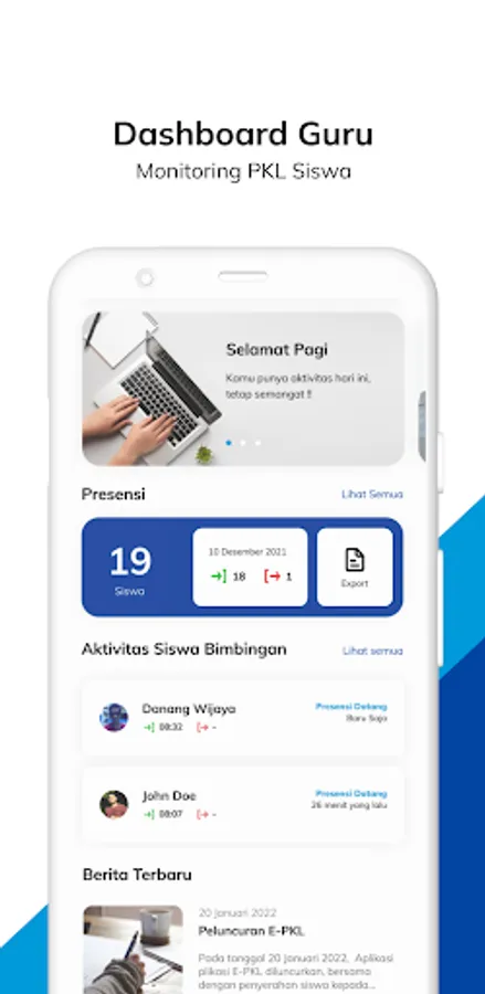 E-PKL is an application for monitoring the Field Work Practice activities of SMK Negeri 2 Yogyakarta Students.