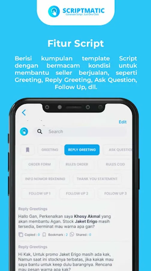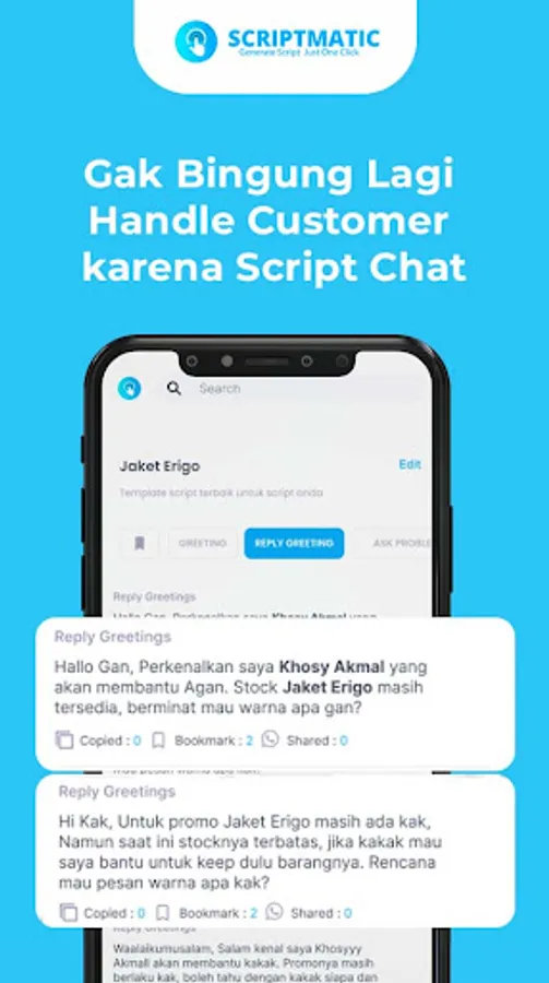 By using a scriptmatic application, you will not run out of chat script ideas which can result in a failed closing. Scriptmatic will give you a copy of any chat scripts that you can use every time you serve customers.