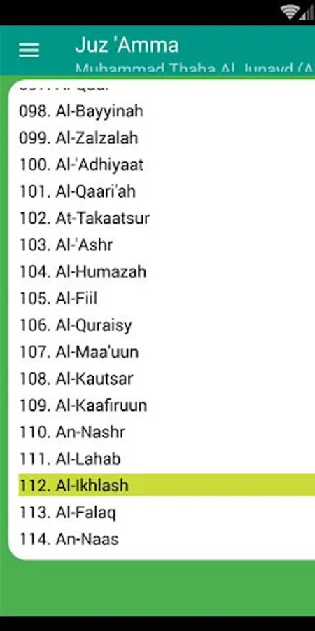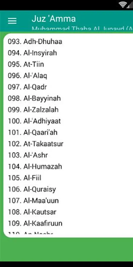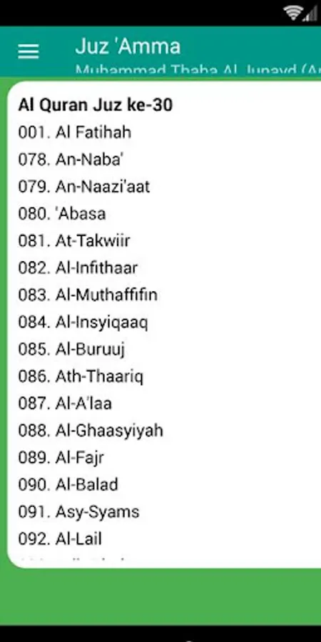 This application helps memorization of the Koran (Juz 'Amma) with the melodious voice of Muhammad Thaha Al Junayd (son).