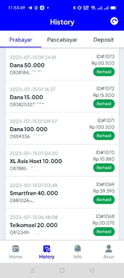 Check balance & account information, check real-time prices, register downline feature, transfer balance to downline menu, add balance, check transaction history, print receipts, app lock feature, etc.