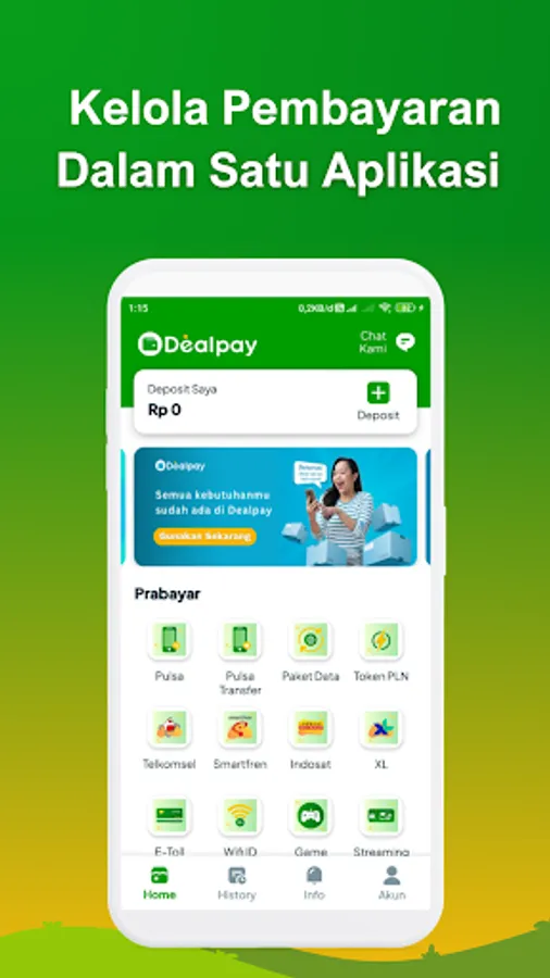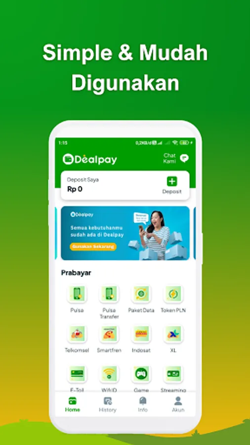 DealPay is an application for ordering credit, internet quota for all operators, and paying bills by providing convenience and competitive prices.