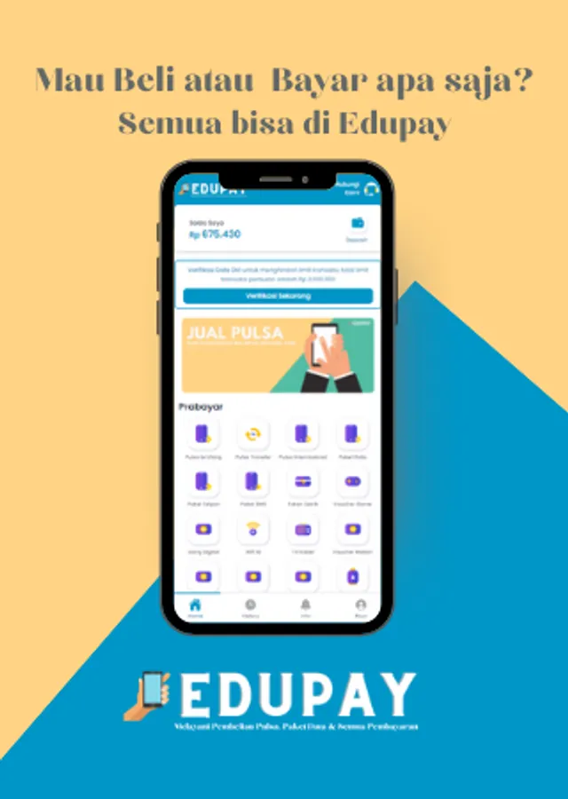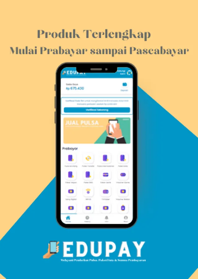 Edupay is one of the cheapest digital product purchase and payment applications in Indonesia. As a provider of digital products, our role is to make purchases and payments simpler with a 1 application system, which means that in 1 application you can make purchases and payments easily, because we have provided various digital products such as All Operators credit, PLN Tokens, Online Game Vouchers, PPOB bills, etc.