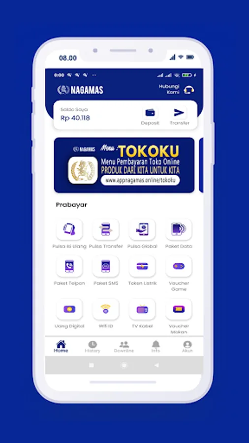 Transaksi Online PRA BAYAR dan PASCA BAYAR ada dalam satu genggaman yang bisa dilakukan transaksi dimanapun, kapanpun, lebih hemat, lebih murah bahkan Pembayaran Transaksi Online anda bisa menjadi GRATIS bahkan bisa menjadi sumber penghasilan anda, dengan menggunakan aplikasi NAGAMAS, serta menu TOKOKU untuk para MITRA PREMIUM dapat menjual produknya di web toko online dengan melakukan SISTEM PEMBAYAN melalui APLIKASI NAGAMAS, Dari kita untuk kita