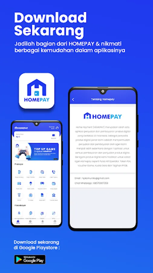 HOMEPAY is a pulse & ppob server platform that provides digital product sales and payment services with only 1 application with 1 hand. The aim is to help MSME business actors who want to sell digital products such as credit, electricity tokens, digital money, complete postpaid product payments.