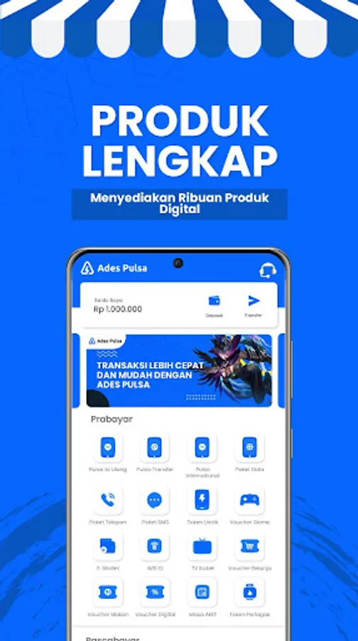 ADES PULSA is one of the cheapest digital product purchase and payment applications. As a provider of digital products, our role is to make purchases and payments simpler with a 1 application system, which means that in 1 application you can make purchases and payments easily, because we have provides various digital products such as All Operator pulses, PLN Tokens, Online Game Vouchers, PPOB Bills, etc