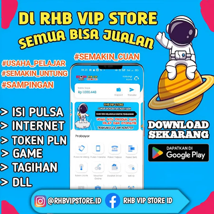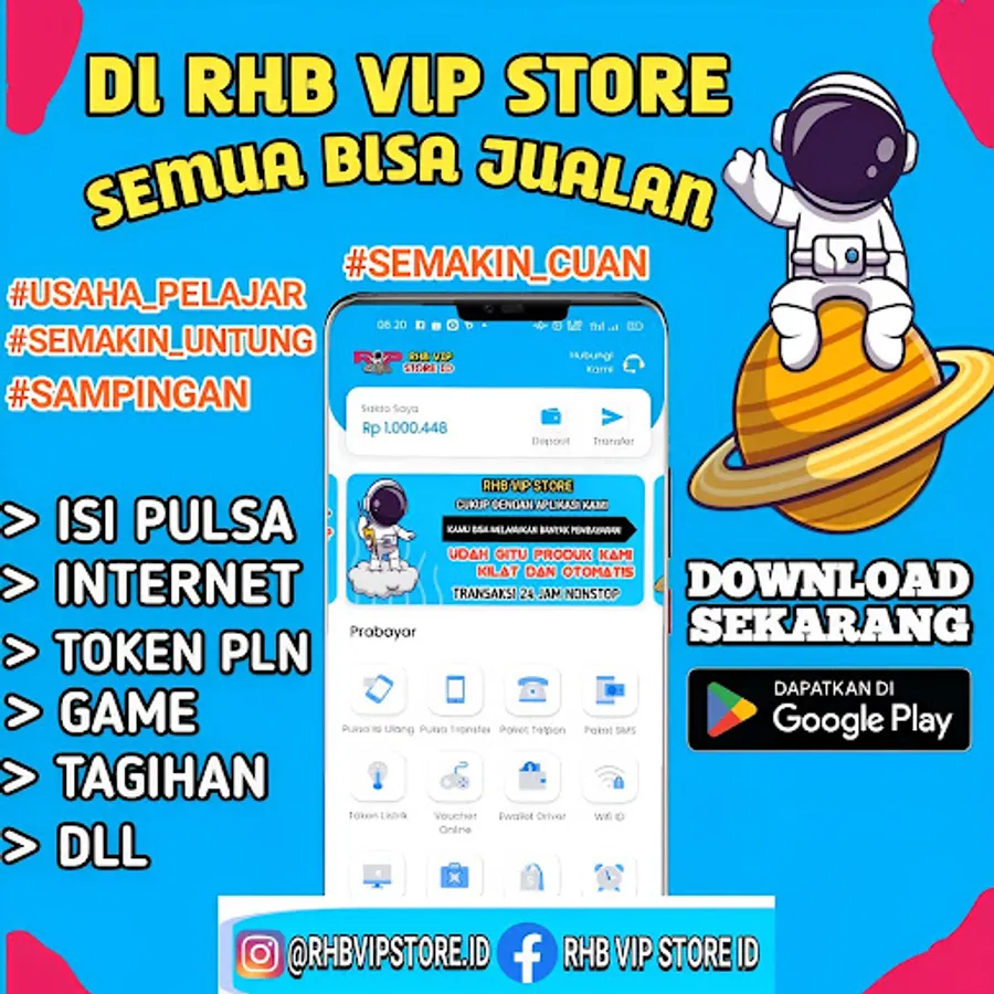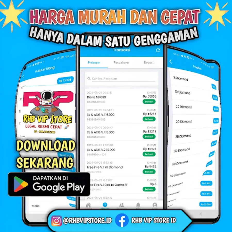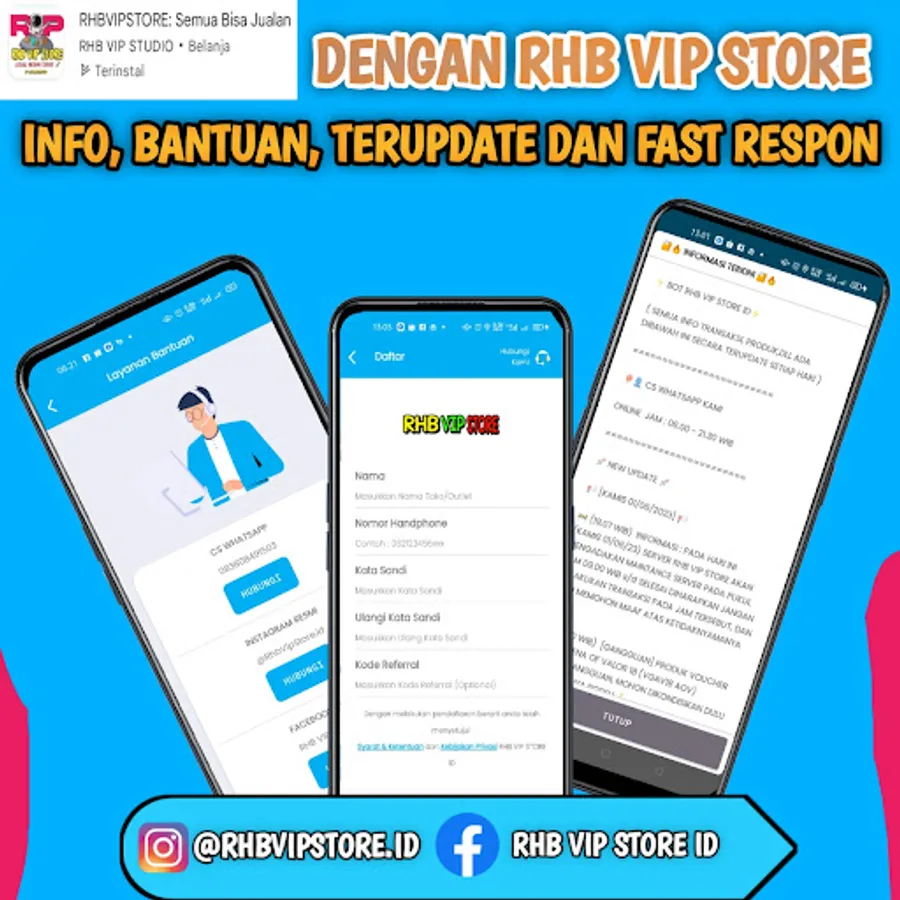 because RHB VIP STORE ID is one of the cheapest digital product purchase and payment applications in Indonesia. As a provider of digital products, our role is to make purchases and payments easier with a 1 application system, which means that in 1 application you can make purchases and payment is easy, because we have provided a variety of digital products such as: