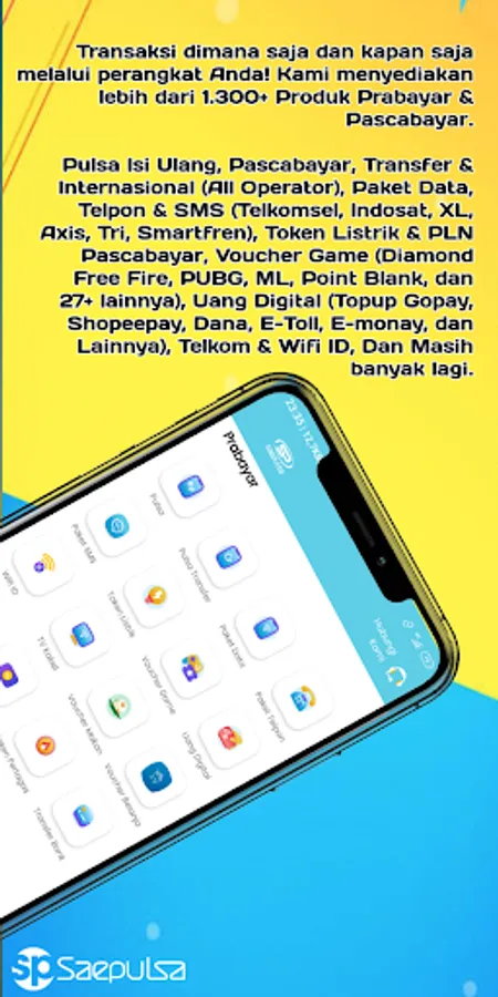 Top-up, Postpaid, Transfer & International (All Operators), Data Packages, Calls & SMS (Telkomsel, Indosat, XL, Axis, Tri, Smartfren), Postpaid Electricity & PLN Tokens, Game Vouchers (Diamond Free Fire, PUBG, ML , Point Blank, and 27+ others), Digital Money (Topup Gopay, Shopeepay, Dana, E-Toll, E-monay, and others), Telkom & Wifi ID, and many more.