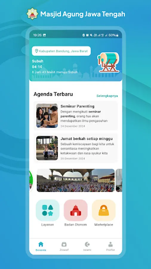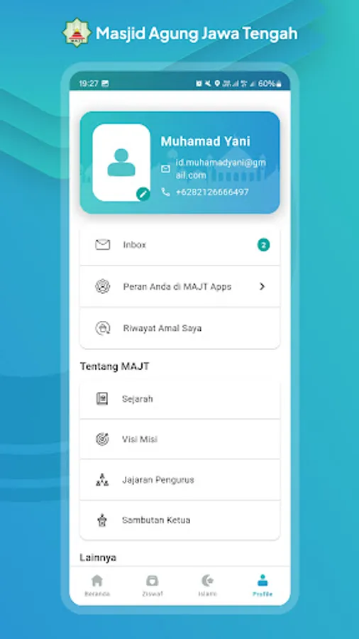 MAJT Mobile is an official application developed by the management of the Central Java Grand Mosque (MAJT) to provide information and services to the community. This application is usually used to access information about prayer schedules, religious activities, location maps, donation services, as well as other information related to activities and facilities at the Central Java Grand Mosque, which is located in Semarang City, Central Java.