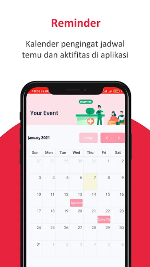 - Notification reminders and calendar of doctor's appointments, telemedicine schedules and taking medication