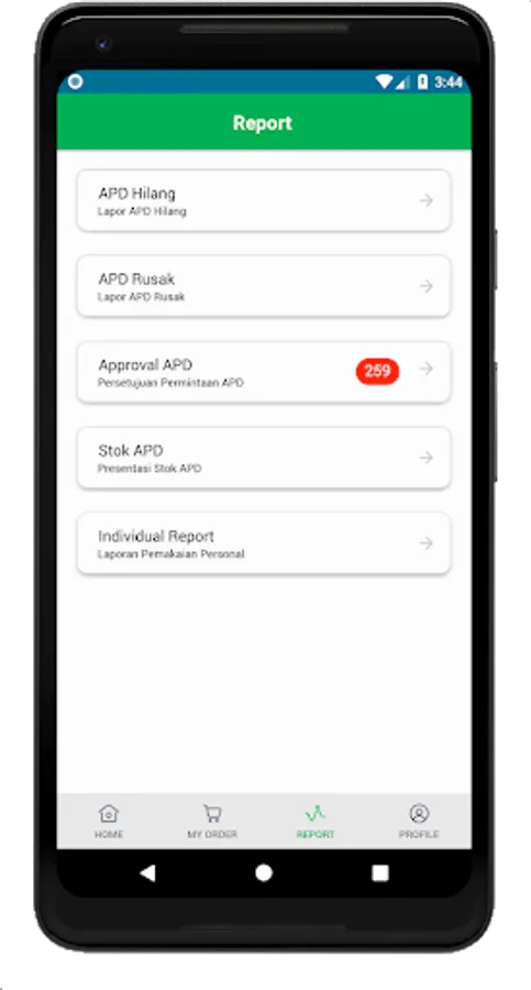 menggunakan Aplikasi SHE Mobile. Tools yang digunakan adalah Mobile masing-masing teknisi atau perorangan sehingga pelaporan lebih real time dan efektif.