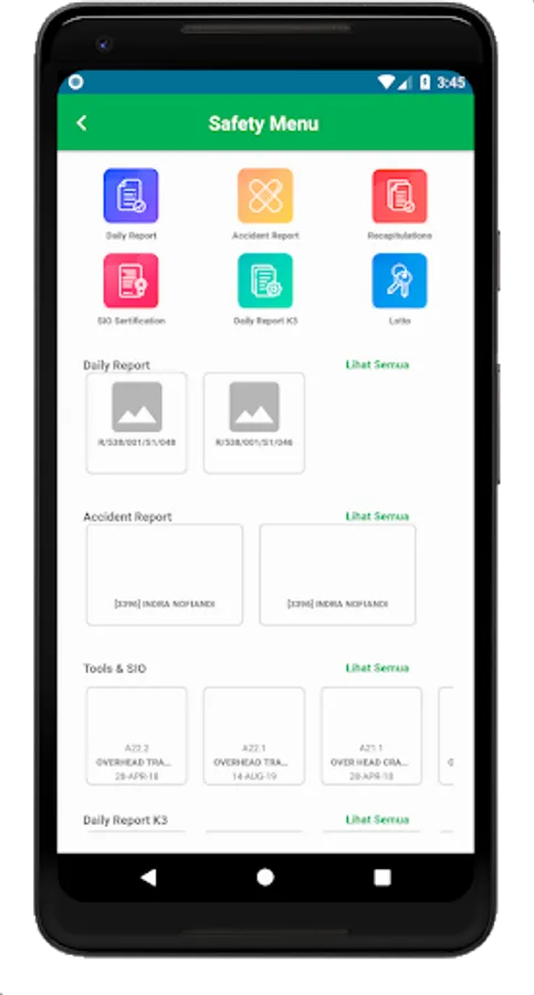 pekerjaan, contohnya adalah pelaporan Unsafe Condition dan Unsafe Action dimana temuan tersebut harus difoto dulu menggunakan handphone setelah itu baru diunggah ke komputer. Contoh satu lagi adalah pencatatan berkala terhadap unit kendaraan Pemadam Kebakaran yang dilakukan setiap shift dengan mengisi form di lapangan terlebih dahulu dan setelah itu dimasukkan ulang dalam Aplikasi SHE (Web) menggunakan Laptop/PC. Juga masih banyak proses lain seperti pencatatan APAR, Hydrant, permintaan APD dan lain-lain. Untuk itu dibutuhkan suatu terobosan baru untuk memudahkan semua proses di atas menjadi lebih efektif, efisien dan akurat. Hal tersebut dapat didukung dengan