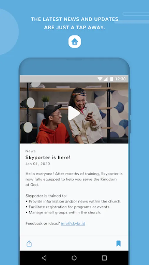 Skyporter helps church members with access to content and programs that can help them in their spiritual growth and community life and also assist leaders with important insights on church growth and member information.