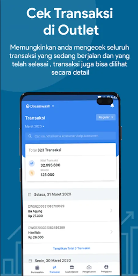 Allows you to check all current and completed transactions, transactions can also be seen in detail