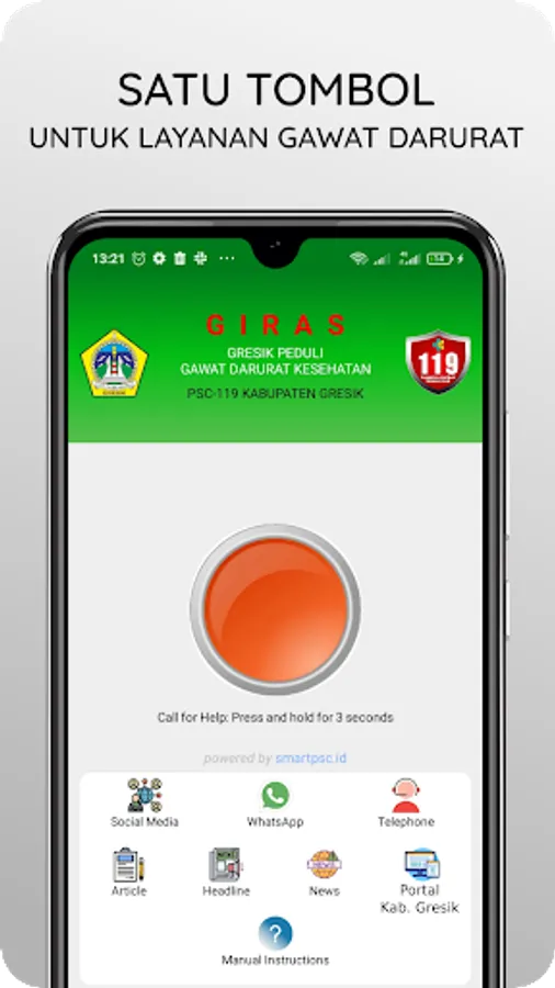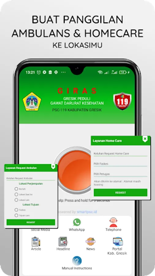 GIRAS (Gresik Peduli Gawat Darurat Kesehatan) allows residents in Gresik Regency to get pre-hospital emergency services easily and quickly by simply pressing the emergency button on the application.