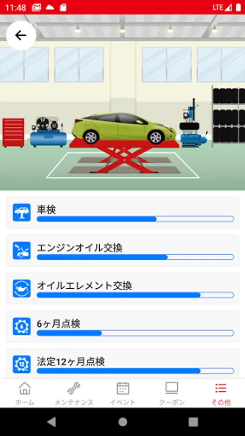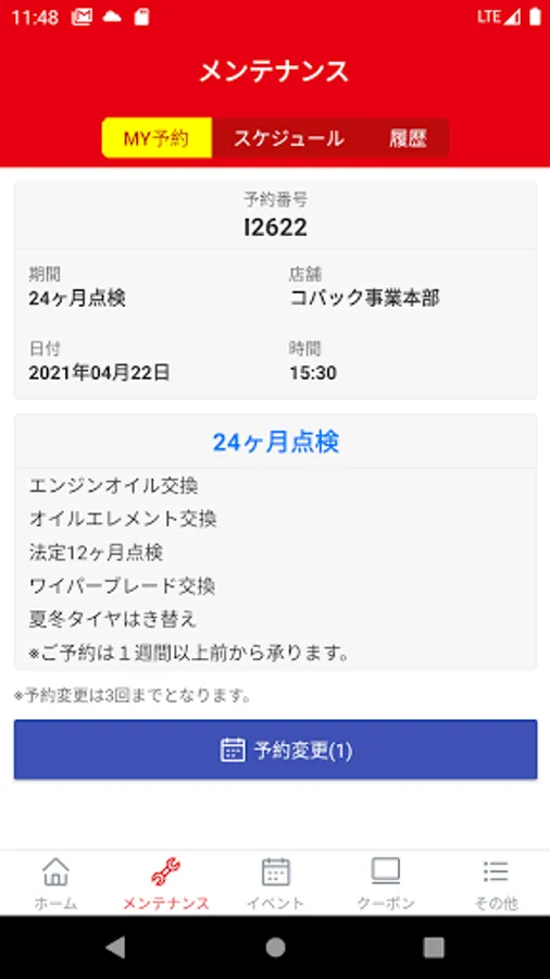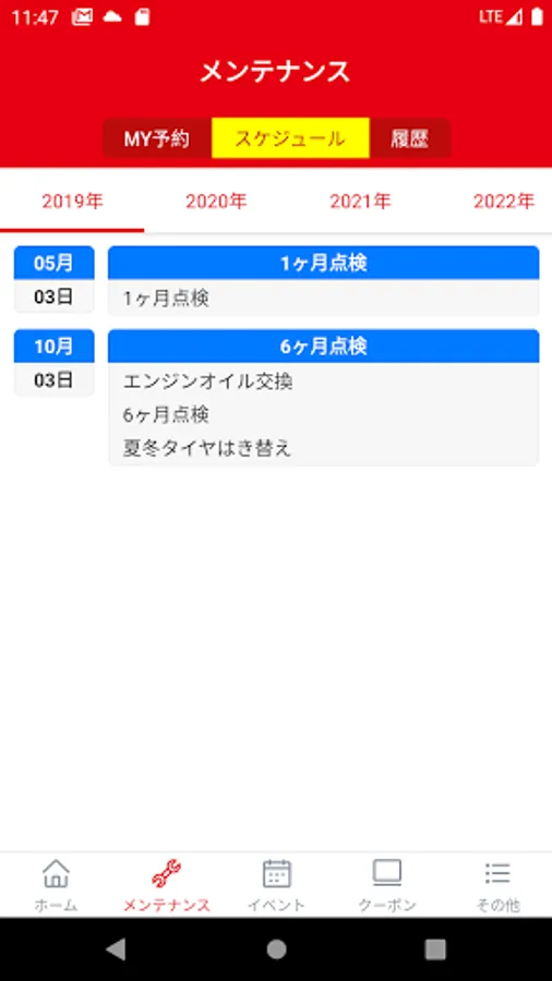 We will notify you of the maintenance deadline on a regular basis, and you can make a reservation as it is from the app. In addition, we will regularly send out information on Akiyama Group events and coupons.