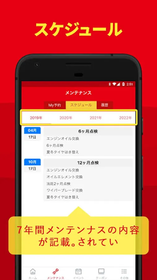 ● We will notify customers who purchased new cars in Akiyama group in advance before maintenance for seven years. If customers grasp the schedule of vehicle inspection and maintenance in seven years, you can be safe for daily driving.