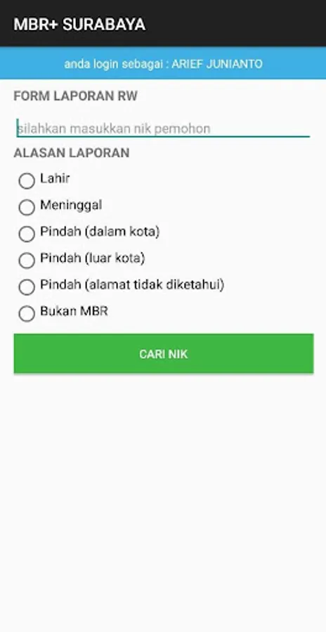 The MBR + Surabaya application is a data processing application for the Surabaya Low-Income Community (MBR).
