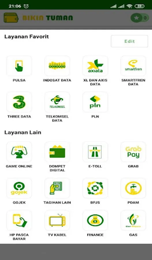 Mobile phone credit purchase applications, internet packages, game vouchers, PLN tokens and payment of various bills.