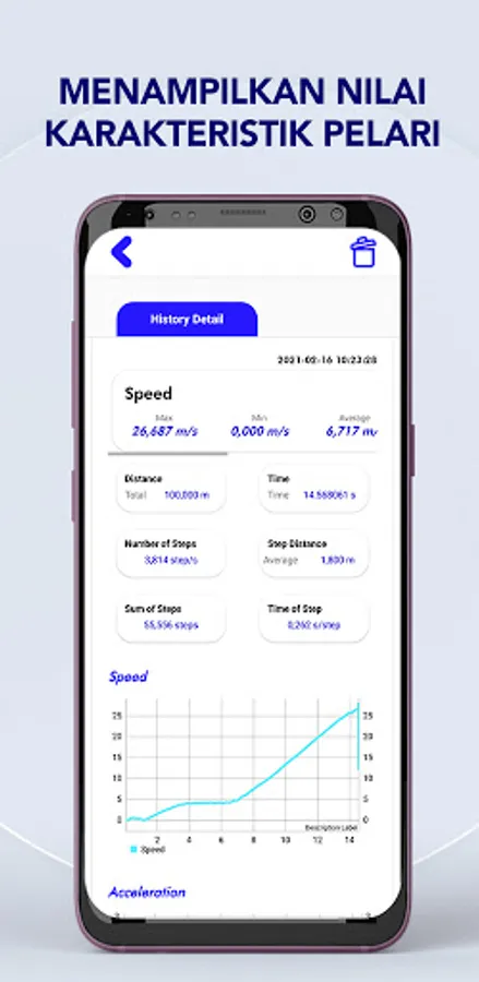 The SprintA application is an application that will display the values of runner characteristics in real time immediately after carrying out a sprint activity in the form of speed values, distance achieved, time duration, stride length, number of steps per second, and time (in seconds) used to complete one step. These characteristic values will provide information to the runner not only the average speed generated when running but also able to show the relationship between the speed achieved, the time and the step of the runner. This application is of course very suitable and specifically for sprint runners.