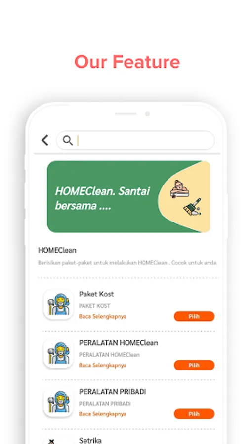 Currently, the menu of services provided is in the form of cleaning services, massage services and beauty services. Service commitment is to provide the best service and maintain customer trust in all areas of service available, as well as to improve the lives of service providers in equipping them.