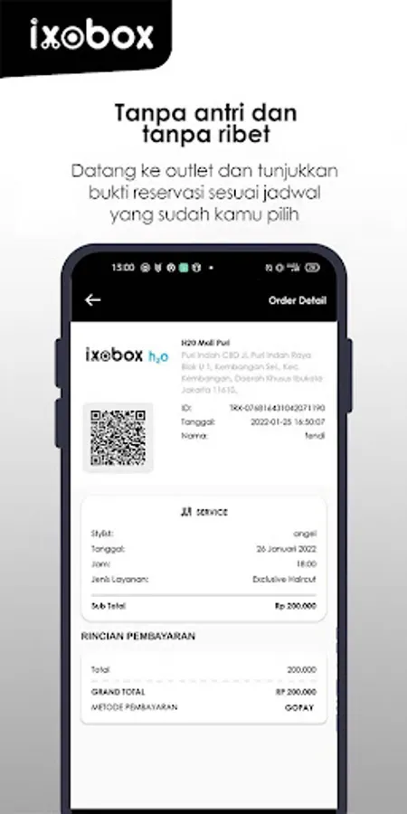 The ixobox application is a modern innovation in the hassle-free and efficient reservation of hair clippers. Supported by a sophisticated system that can be downloaded via the play store for Android users, it is here to meet the needs of millennials. If you want to experience a haircut without queuing, you can choose an outlet and schedule as you wish, even cashless payments, and want to do home service. it's time to switch to the ixobox application. Hurry up, download it because for the first user you will get a special price of Rp. 30,000/haircut, so what are you waiting for... because the cool ixobox stylists are waiting for your arrival.