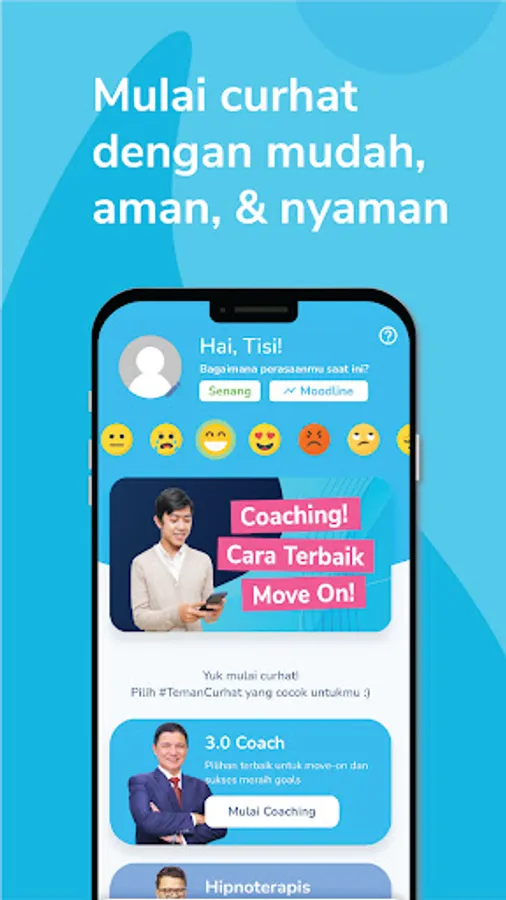 Teman Curhat adalah aplikasi wellness center untuk kesejahteraan mental, spiritual, dan sarana pengembangan diri.