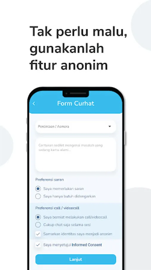 Tentu saja sangat aman! Jaminan keamanan, kerahasiaan, dan privasi pengguna merupakan prioritas utama. Aplikasi Teman Curhat menggunakan fitur END-TO-END encryption untuk menjamin keamanan komunikasi saat sesi konsultasi atau curhat berlangsung.