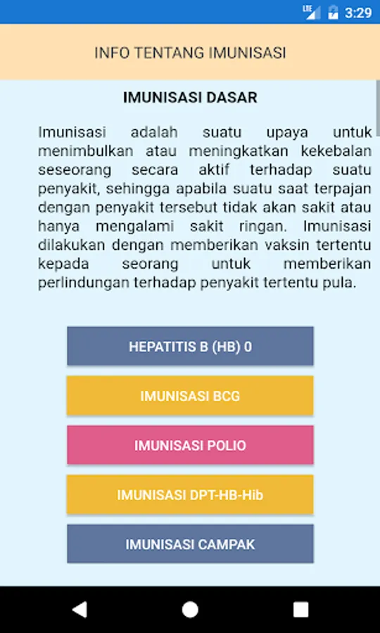 Basic immunization consists of one dose of Hepatitis B (Immunization Hepatitis B0), 1 dose of BCG (BCG immunization), three doses of DPT-HB-Hib (immunization of DPT-HB-Hib), 4 doses of Polio drops (Immunization Polio), and 1 dose measles (measles) should be administered to infants aged 0 -11 months.