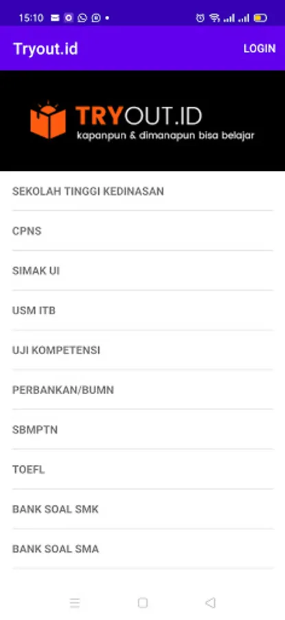 TRYOUT.id as the most complete and best learning center for questions + discussions in Indonesia, has several advantages so that it becomes a strong reason to help realize passing the exam selection. Whenever and wherever you can learn, because TRYOUT.id can be accessed in a lightweight mobile form without annoying advertisements.