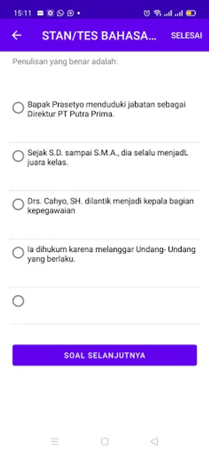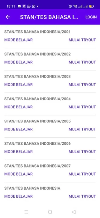 With online tryouts, anyone can learn as long as they have a cellphone, anytime and anywhere, the questions are made in 2 modes: study mode and tryout mode. If the tryout mode, answer the question first until it's finished, then it will be known at the end right and wrong. But if the learning mode is, after every question, the answer is immediately visible below it. It's fun!