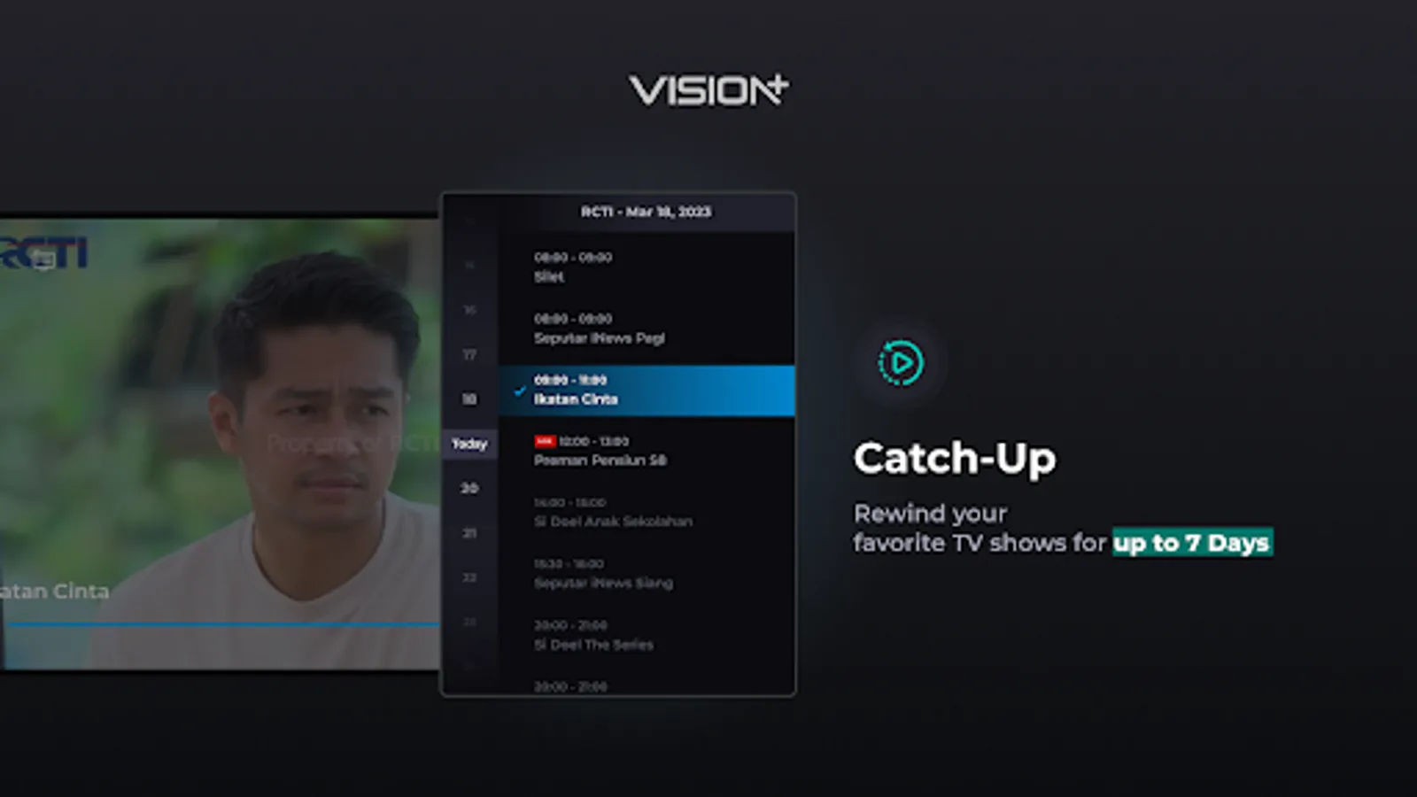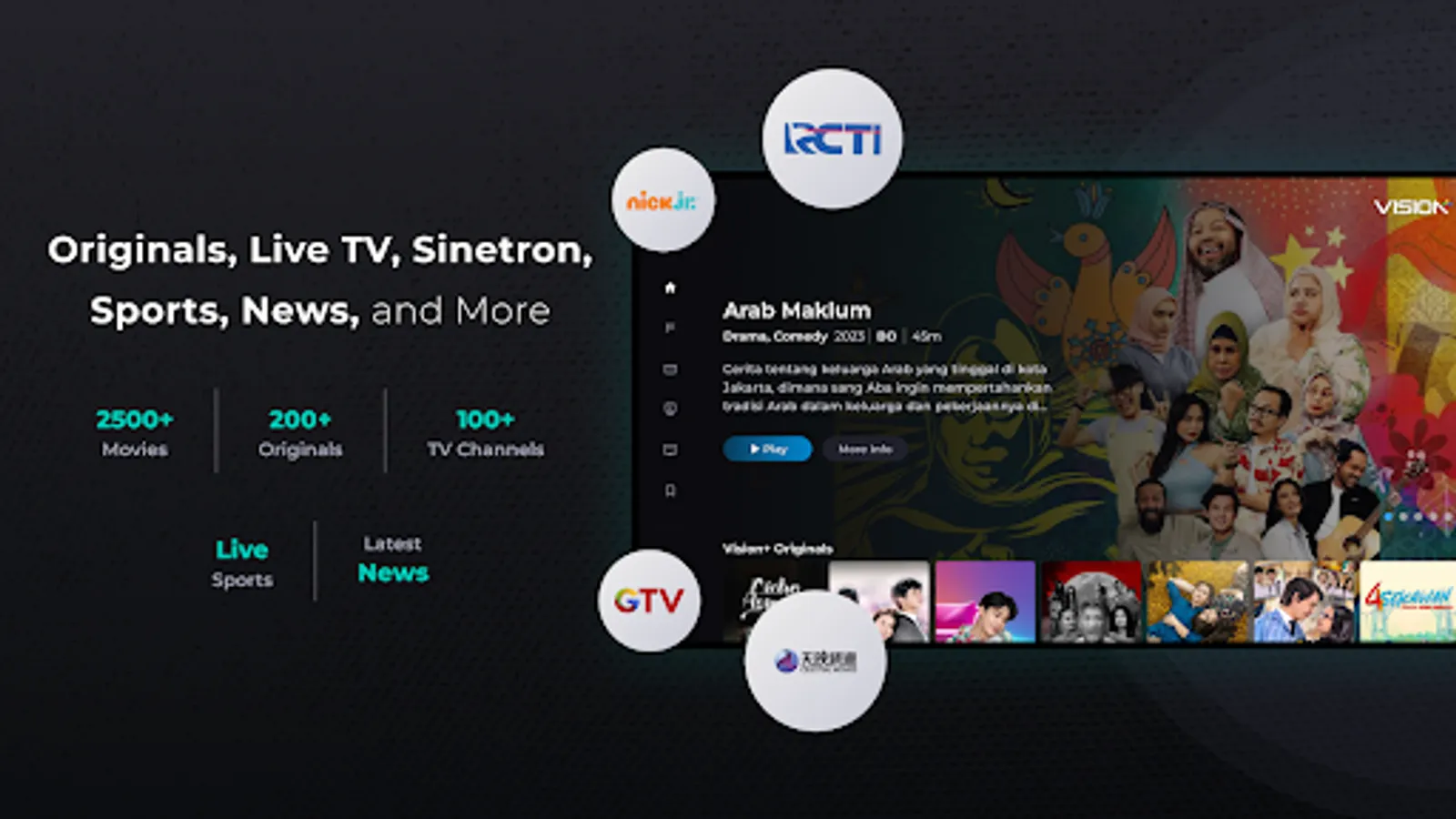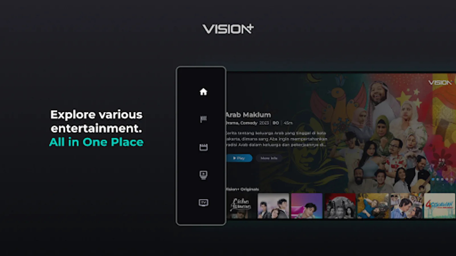 Vision+ : One app with million entertainment! Enjoy various live streaming services from national to international TV channels, watch 254.000+ hours of movies and series, play in-app games, and watch new exclusive Original series every month.