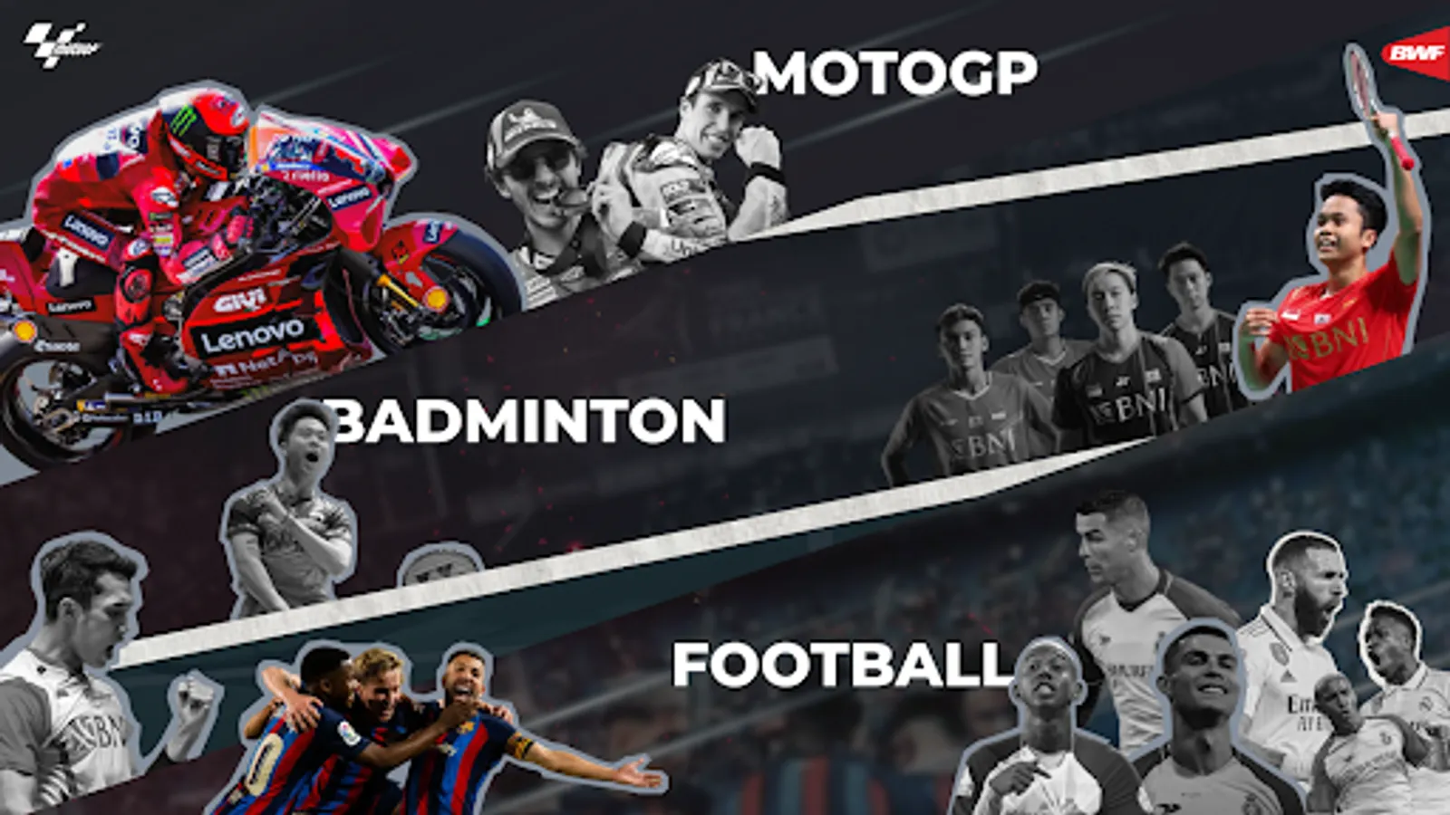 Stream exclusive live sports, and highlights, from football to Esports. We have Soccer Channel, MNC Sport, to SPOTV channels for well-known events such as MotoGP, Football, futsal, BWF Badminton, Wimbledon Tennis, WorldSBK, Formula E, Golf, SEA GAMES, Asian Games, and many more.