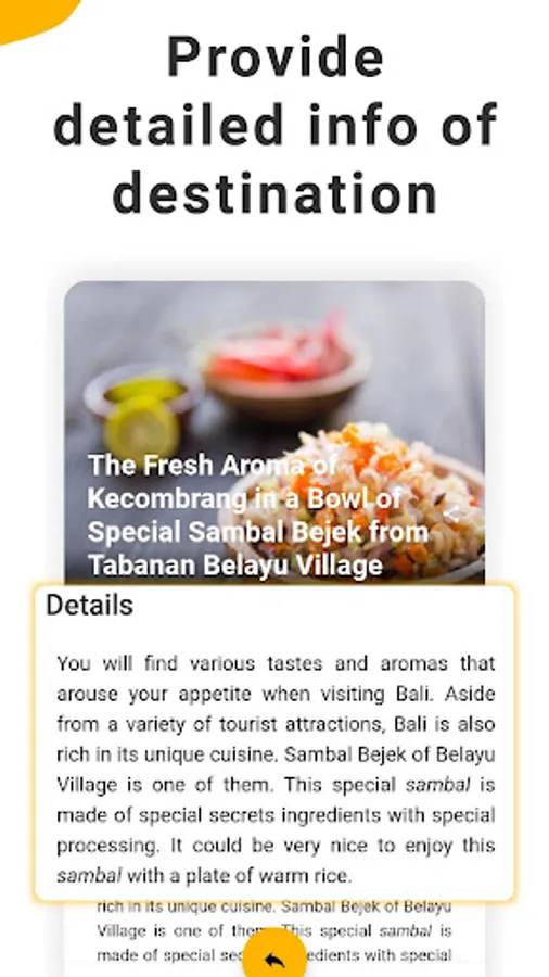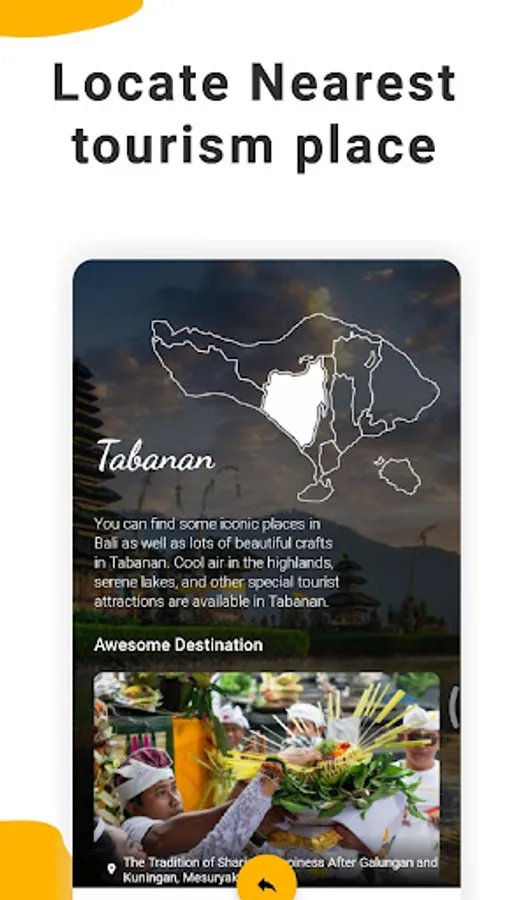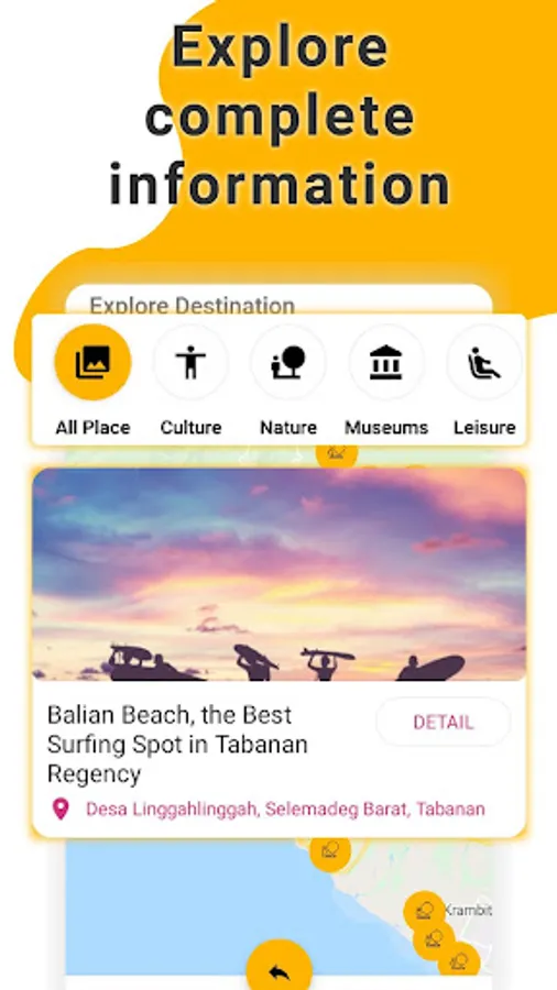 Enjoy your adventure in Bali with complete guide from the Official Visit Bali Travel Guide application. You can do lots of fun activities, to visit choice of amazing places in Bali. Find the recommended tourism place based on your current location and the place where you want to go.