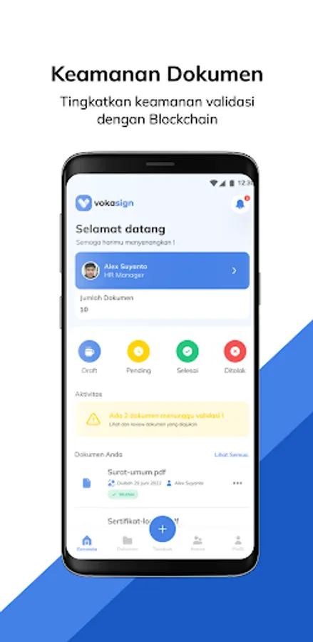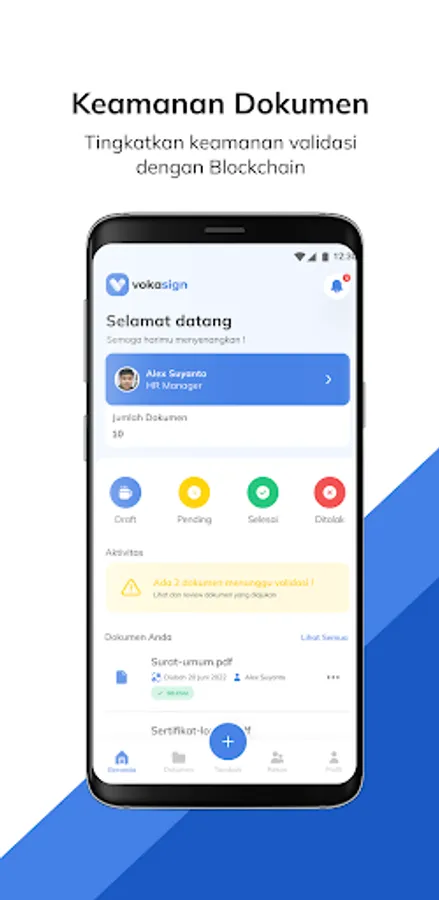 VokaSign helps you and your company in validating documents with reliable digital signature technology. In addition, Vokasign is integrated with our main Vokata application to assist companies in implementing Employee Self Service. With the Vokata ecosystem, we will help integrate your business processes easily.