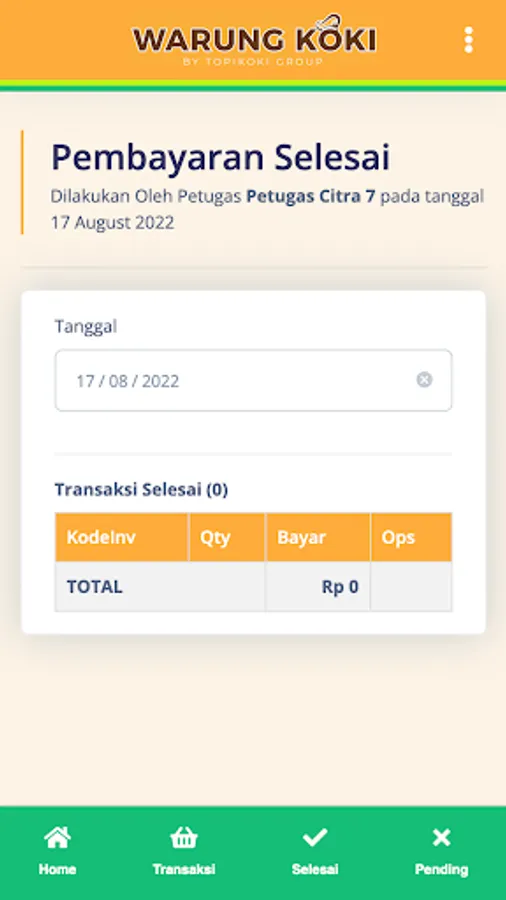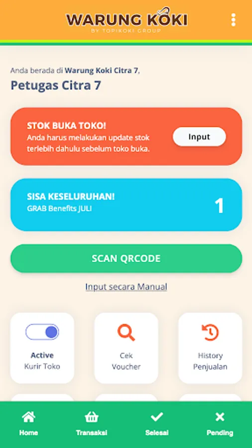 This application is used by Warungkoki officers to process transactions made in the Warungkoki application