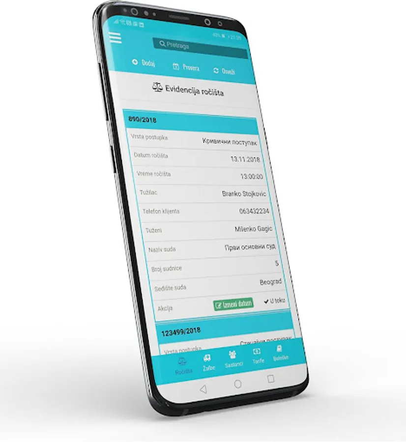 Lawyer's task manager - e-Reminder is an mobile application suited for lawyers and lawyer’s interns from public and private departments that features record and monitoring of hearings, appeals, meetings, client rates, default interest accruing etc. The app is optimized and fully usable for the lawyers of the following countries: Serbia, Macedonia, Croatia, Montenegro and Slovenia. This app can be adapted to any country and the needs of lawyers from that country. Special thing about e-Reminder are SMS and E-MAIL services.